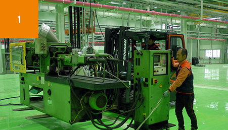 공장내 환경에 맞추어 중량물 장비를 이용하여 실내반입작업 진행